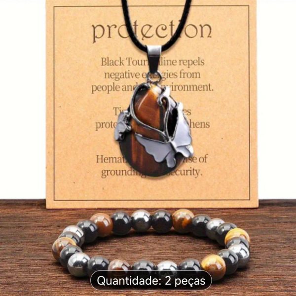 O preço original era: 25.00€.20.00€O preço atual é: 20.00€.Colar e pulseira de tripla proteção