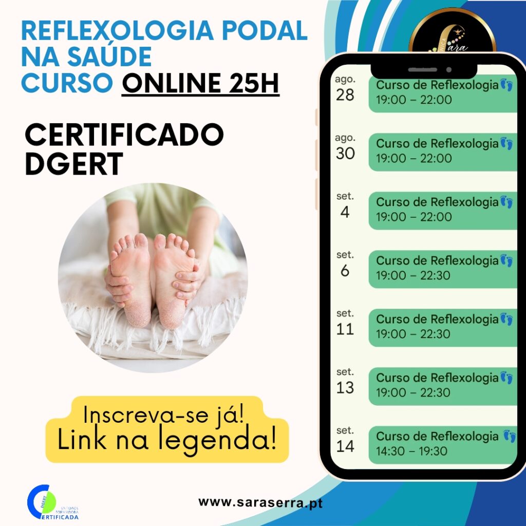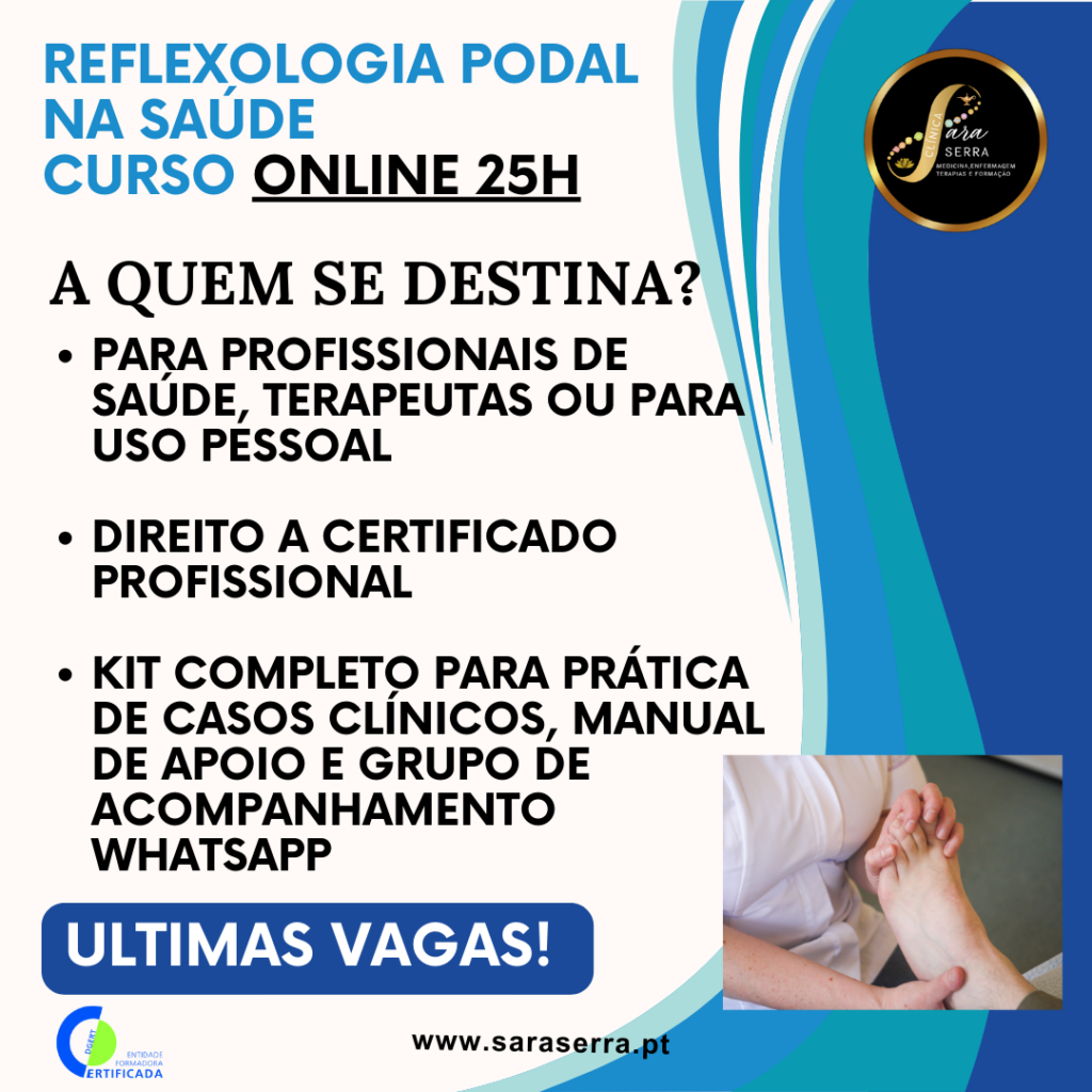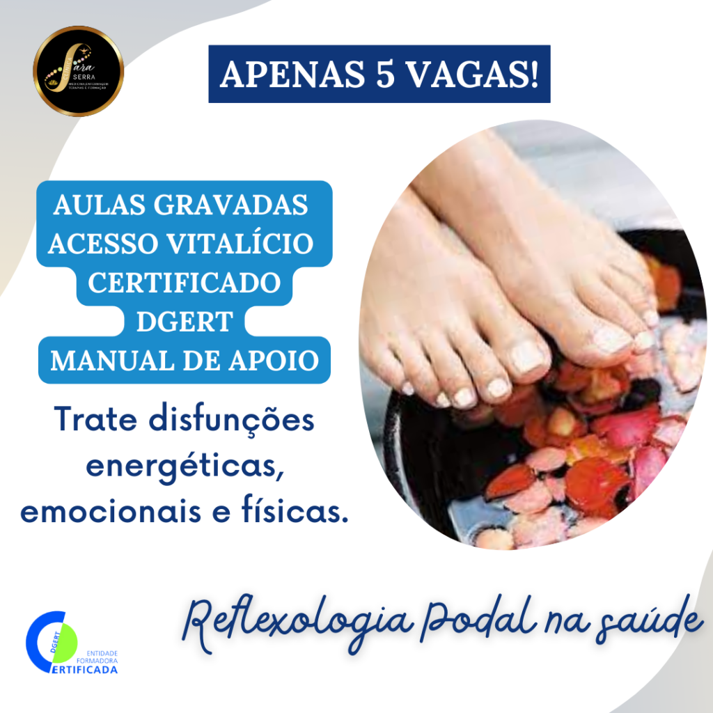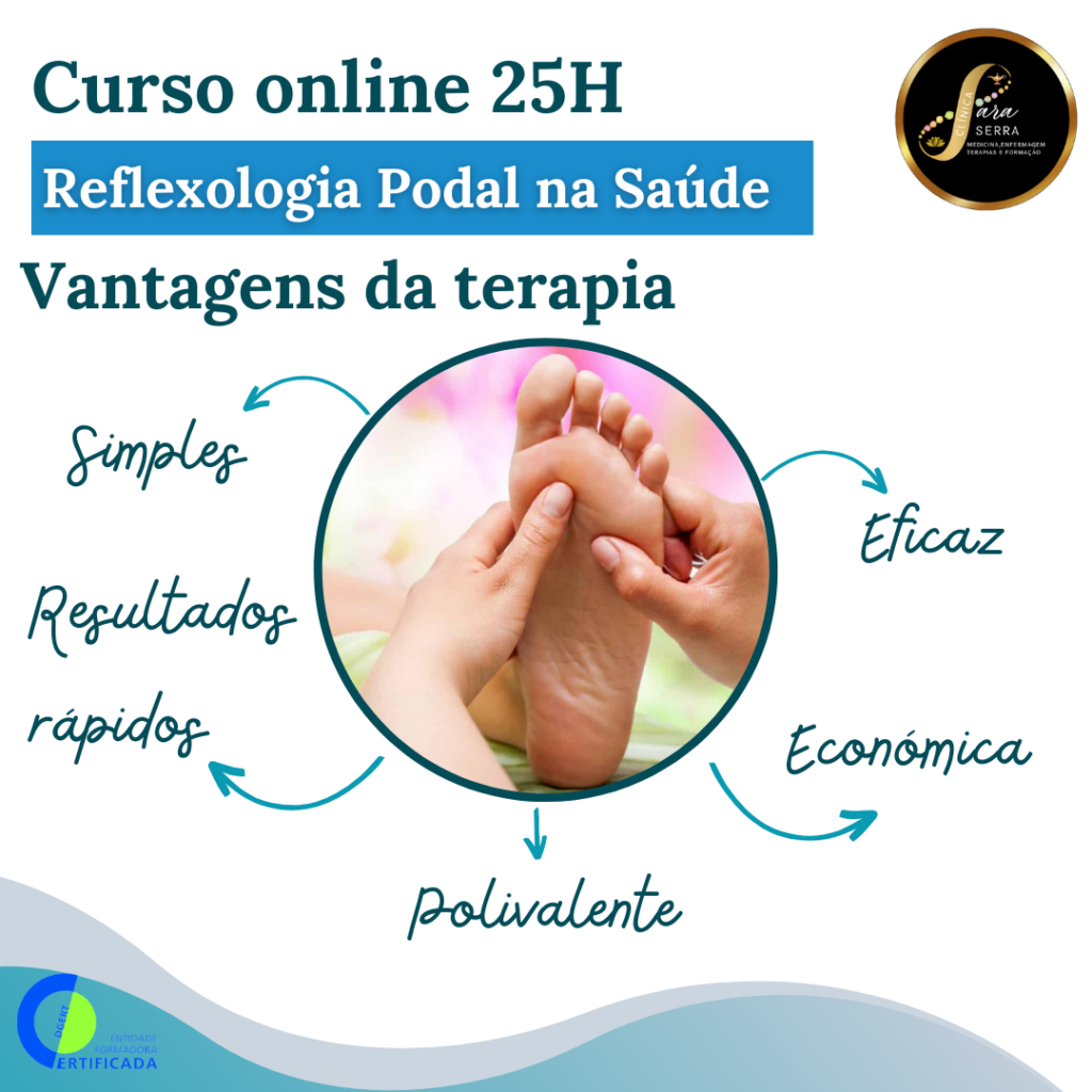 Faça já a sua inscriçao no curso ONLINE de Reflexologia Podal na Saúde, com 25H, acesso vitalicio, e descubra tudo o que esta terapia simples e polivalente tem para lhe oferecer!